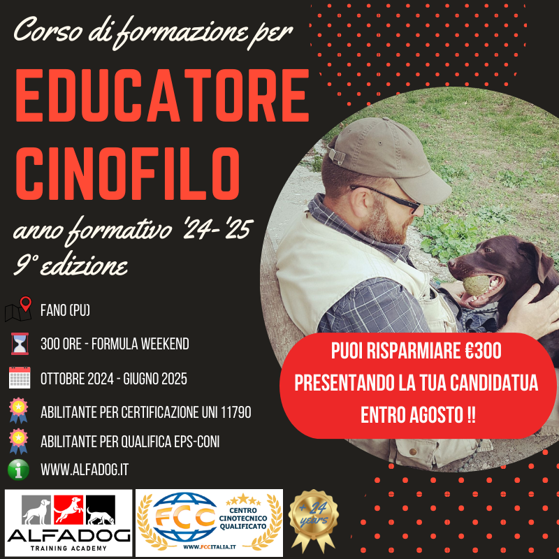 Ad ogni modo, con l’avvento della norma tecnica UNI 11790, che nel nostro paese “assorbe” di fatto la norma CEN CWA 16979, si è deciso nei tavoli di concertazione, di adottare come terminologia relativa a questa qualifica specifica, quella di Educatore Cinofilo.